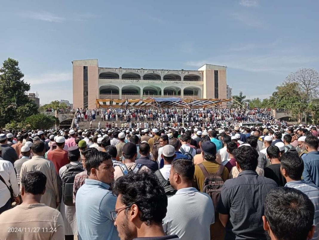 সনাতনী জাগরণ জোটের মুখপাত্র চিন্ময় কৃষ্ণ দাস ব্রহ্মচারীর অনুসারীদের হাতে নির্মমভাবে খুন হওয়া আইনজীবী সাইফুল ইসলামের নামাজে জানাজা অনুষ্ঠিত হয়েছে।