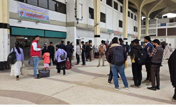 বুধবার (২৯ জানুয়ারি) সকালে রাজশাহীর উদ্দেশে কমলাপুর স্টেশন ছাড়ে ‘ধূমকেতু এক্সপ্রেস’। স্টেশন ছাড়ার অপেক্ষায় রয়েছে আরো কয়েকটি ট্রেন।