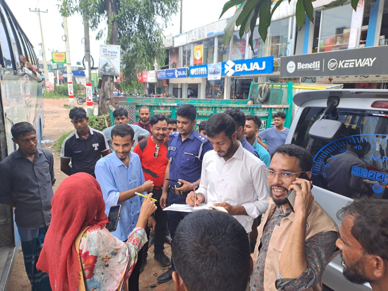 অথ্য প্রমান অনুযায়ী, বিভিন্ন অভিযোগ পাওয়ায় তাৎক্ষণিক তাদেরকে সতর্ক করা হয় এবং টিমের উপস্থিতিতে রুট পারমিট বিহীন -২টি, ড্রাইভিং লাইসেন্স বিহীন -৫টি,ট্যাক্স টোকেন বিহীন -৩টি,ফিটনেস – ৫টি,হেলমেট বিহীন -২টি মোট ১৭টি মামলায় ২৮হাজার টাকা জরিমানা করা হয়।