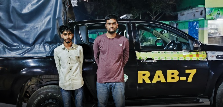 চট্টগ্রাম নগরীতে মাদকবিরোধী অভিযানে ১০ কেজি গাঁজা এবং ১২২ বোতল ফেন্সিডিলসহ মোঃ আজিম উদ্দিন (২৩) ও মোঃ সৌরভ চৌধুরী (২৮) নামে দুই মাদক ব্যবসায়ীকে আটক করেছে র্যাব-৭।
