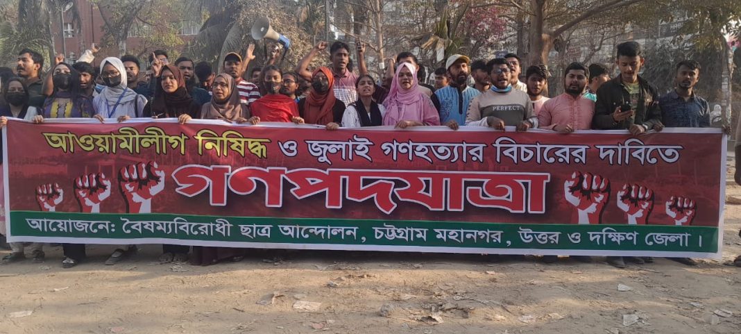 আজ বৈষম্যবিরোধী ছাত্র গণপদযাএা বিপ্লব উদ্যান ২ নং গেইট ছাএ ১৮ই ফেব্রুয়ারী (মঙ্গলবার) বিকেল ৪ টায় আওয়ামীলীগ নিষিদ্ধ ও জুলাই গণহত্যা বিচারের দাবিতে বৈষম্যবিরোধী ছাত্র আন্দোলন