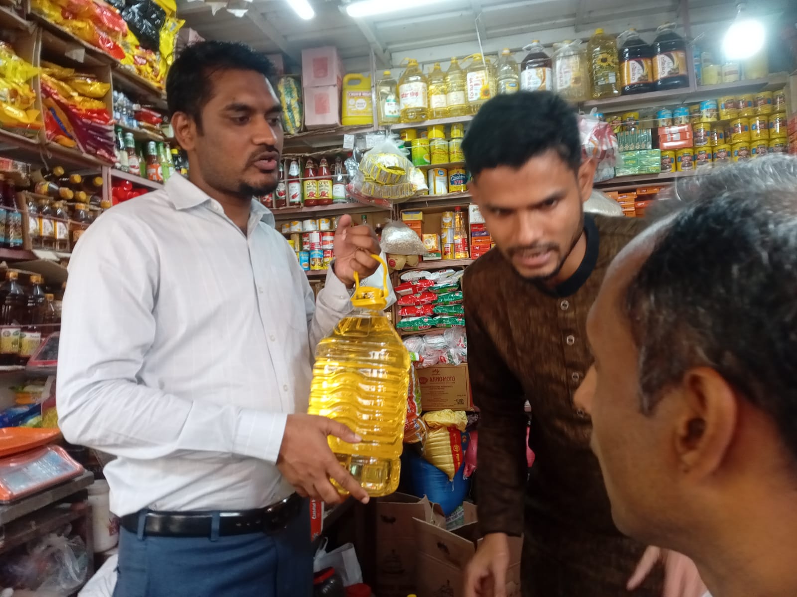 অভিযানে মূল্য তালিকা প্রদর্শন না করায় মেসার্স ইয়াসিন বয়লার (প্রো: ইয়াসিন) কে ৩ হাজার টাকা, প্রতিশ্রুত সেবা প্রদান না করে কিছু নির্দিষ্ট সংখ্যক ক্রেতার কাছে সয়াবিন তেল বিক্রি করায় এম কে এস ট্রেডিং (প্রো: কামাল মিয়া) কে ২০ হাজার টাকা, অধিক মূল্যে সুপার তেল বিক্রয় করা ও বোতলজাত সয়াবিন তেল লুকিয়ে রাখার কারণে মেসার্স জেকে ট্রেডার্স কে ৫০ হাজার টাকা জরিমানা করা হয়।