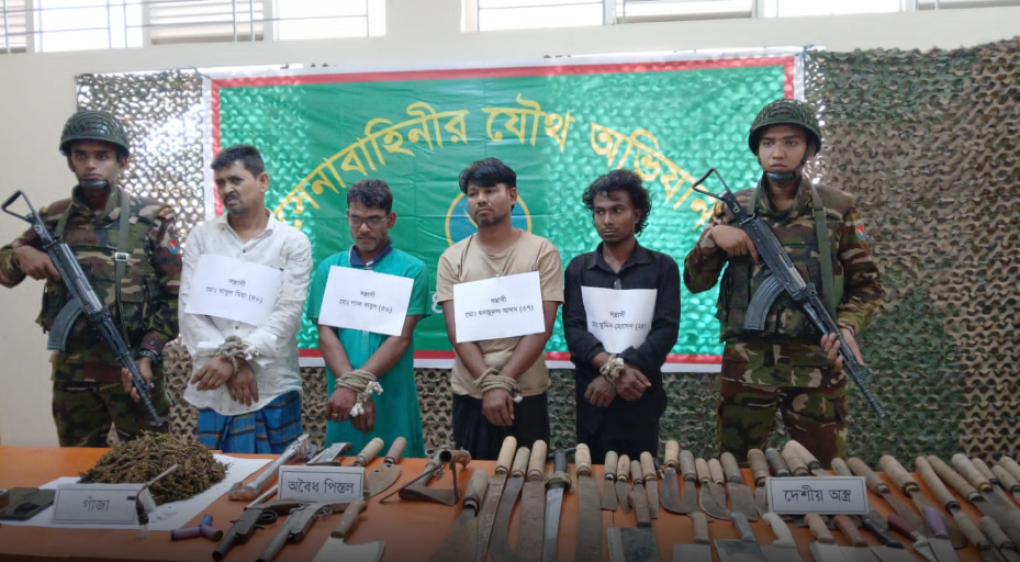 চট্টগ্রামের বোয়ালখালীতে অস্ত্রসহ চারজন শীর্ষ সন্ত্রাসী ও মাদক ব্যবসায়ীকে গ্রেপ্তার করেছে সেনাবাহিনী।