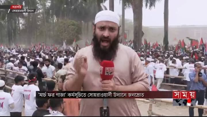 মার্চ ফর গাজা’র রিপোর্ট পরিবেশন করে নেটদুনিয়ায় প্রশংসায় ভাসছেন সময় টিভির সাংবাদিক মুফতি আব্দুল্লাহ তামিম।