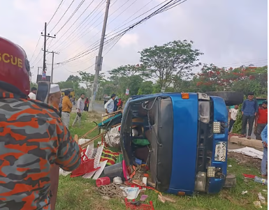 নিহত শিশুর নাম জাকিয়া ইসলাম (৫)। দুর্ঘটনায় আহত হয়েছেন শিশুটির বাবা জামাল উদ্দিন (৩৮), মা লাইজু বেগম (৩০), ভাই মো. ফয়সাল (১৪), নানি সেলিনা বেগম (৬০), খালা রিমা আক্তার (২৮) ও খালাতো বোন সুমাইয়া আক্তার (৫) ও গাড়ির চালক মো. রায়হান (২৪)।