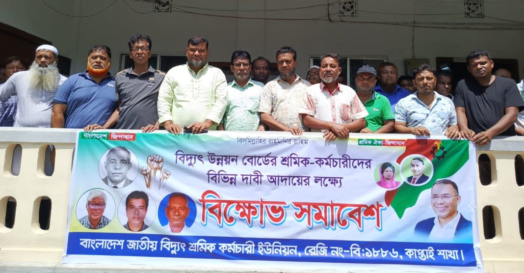 জাতীয় বিদ্যুৎ শ্রমিক কর্মচারী ইউনিয়ন (রেজি নং:- বি১৮৮৬) কাপ্তাই শাখার আয়োজনে ৫দফা দাবীতে বিক্ষোভ সমাবেশ করা হয়েছে। কেন্দ্রীয় কর্মসূচীর অংশ হিসেবে বিদ্যুৎ উন্নয়ন বোর্ডের শ্রমিক-কর্মচারীদের বিভিন্ন দাবী আদায়ে বিক্ষোভ সমাবেশ করে।