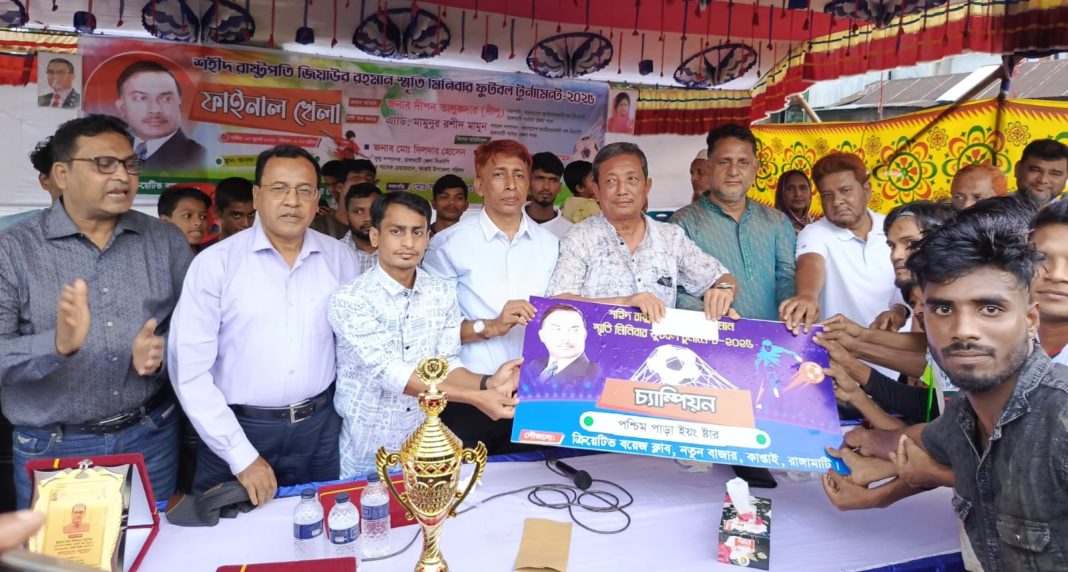 কাপ্তাইয়ে শহীদ রাষ্ট্রপতি জিয়াউর রহমান স্মৃতি মিনিবার ফুটবল টুর্নামেন্ট চ্যাম্পিয়ন পশ্চিম পাড়া ইয়াং স্টার।