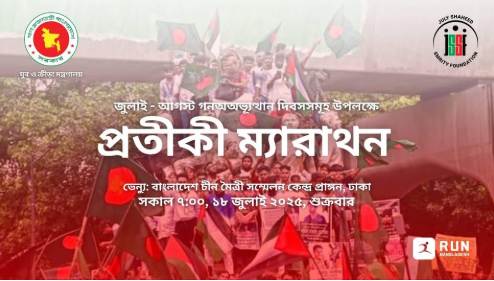 জুলাই পুনর্জাগরণ অনুষ্ঠানমালার অংশ হিসেবে শুক্রবার (১৮ জুলাই) দেশের সব জেলায় প্রতীকী ম্যারাথন অনুষ্ঠিত হবে। জুলাই অভ্যুত্থানে আহত ও শহীদ পরিবারের সদস্যরা যার অগ্রভাগে থাকবেন।
