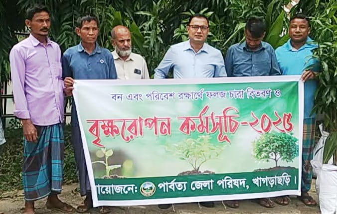 খাগড়াছড়ি পার্বত্য জেলা পরিষদের আর্থিক সহযোগিতায় জলবায়ু ও পরিবেশের ভারসাম্য উন্নয়নে মাটিরাঙ্গা উপজেলায় ফলের চারা বিতরণ করা হয়েছে।