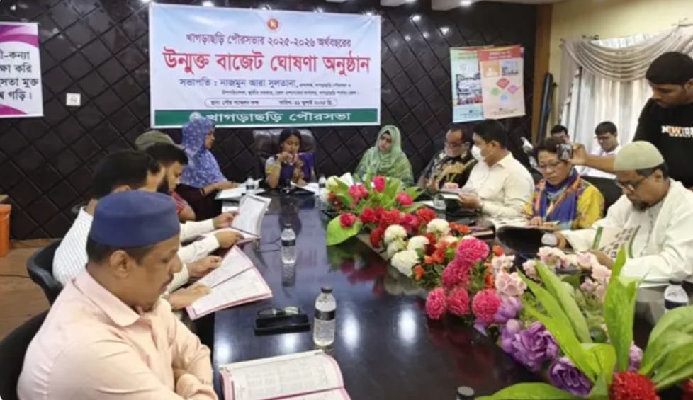 খাগড়াছড়ি পৌরসভার ২০২৫-২৬ অর্থবছরের জন্য ১৫ কোটি ২ লাখ ১ হাজার ২শ ২২ টাকার উন্মুক্ত বাজেট ঘোষণা করা হয়েছে।