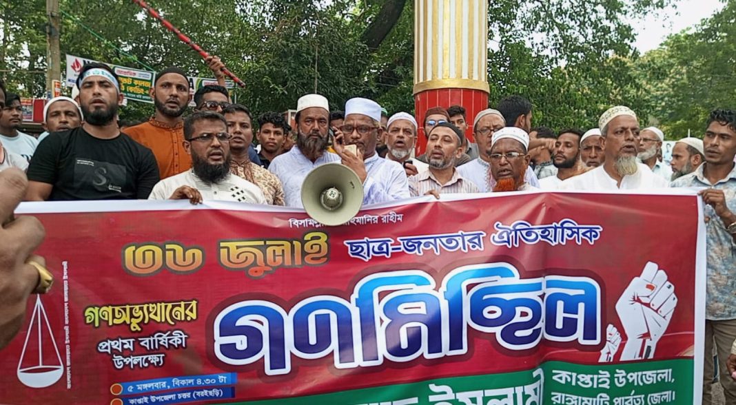 রাঙ্গামাটির কাপ্তাইয়ে বাংলাদেশ জামায়াতে ইসলামীর আয়োজনে ৩৬ জুলাই ছাত্র-জনতার ঐতিহাসিক গণঅভ্যুত্থান দিবস উপলক্ষে গণমিছিল অনুষ্ঠিত হয়েছে।