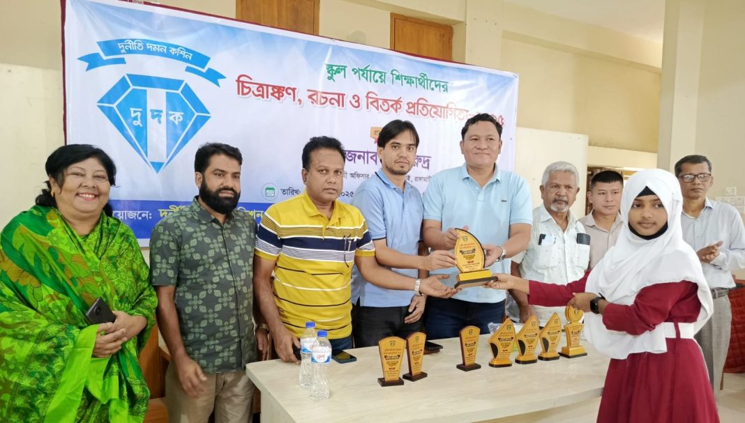 অনুষ্ঠান শেষে বিজয়ীদের হাতে পুরস্কার তুলে দেয়া হয়। এসময় স্কুল প্রধান, শিক্ষক, প্রতিযোগী ও দুর্নীতি প্রতিরোধ কমিটির সদস্যগণ উপস্থিত ছিলেন।