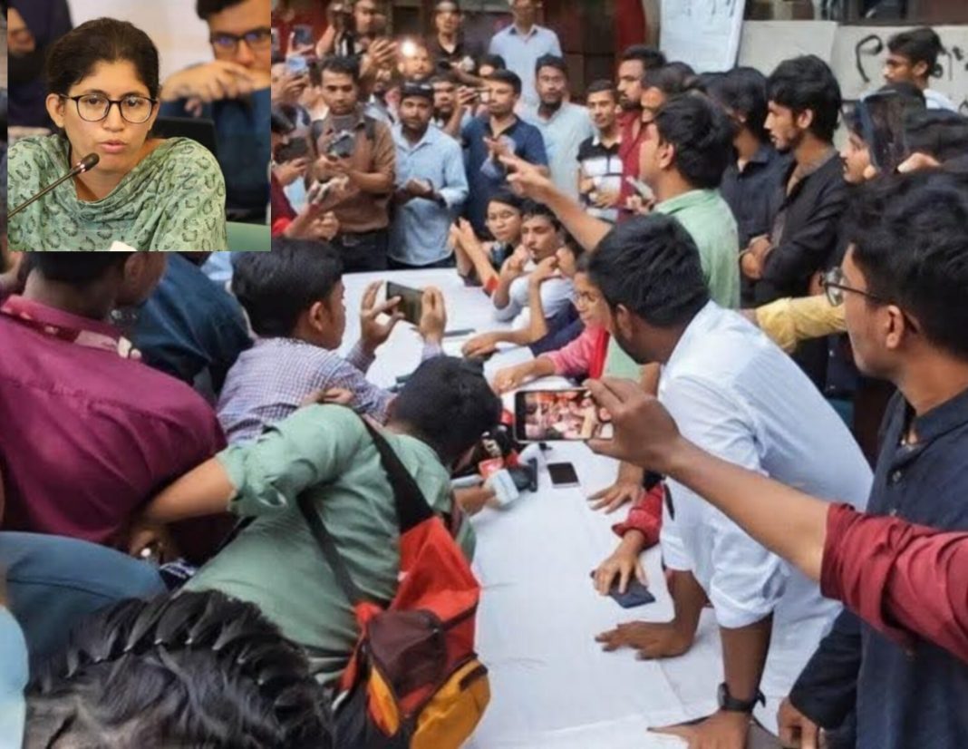 ঢাকা বিশ্ববিদ্যালয় কেন্দ্রীয় ছাত্র সংসদ (ডাকসু) নির্বাচনে ‘স্বতন্ত্র শিক্ষার্থী ঐক্য’ প্যানেলের ভিপিপ্রার্থী ও বৈষম্যবিরোধী ছাত্র আন্দোলনের সাবেক মুখপাত্র উমামা ফাতেমার সংবাদ সম্মেলন বয়কট করেছেন মোজো সাংবাদিকরা। উমামা ফাতেমা সংবাদ সম্মেলনের নির্ধারিত আসনে বসতেই যার যার বুম সরিয়ে নিয়েছেন মোজো সাংবাদিকরা।