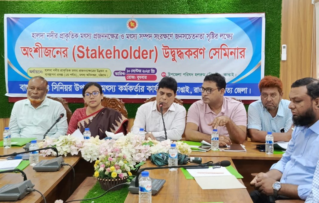 হালদা নদীর প্রাকৃতিক মৎস্য প্রজননক্ষেত্র উন্নয়ন ও ব্যবস্থাপনা প্রকল্প(২য় পর্যায়), মৎস্য অধিদপ্তর, চট্টগ্রাম শীর্ষক প্রকল্পের আওতায় অংশীজনের সমন্বয়ে রাঙামাটির কাপ্তাইয়ে উদ্বুদ্ধকরণ সেমিনার অনুষ্ঠিত হয়েছে।