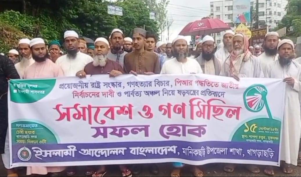 পিআর পদ্ধতিতে জাতীয় সংসদ নির্বাচন, প্রয়োজনীয় রাষ্ট্র সংস্কার ও গণহত্যার বিচার দাবিতে খাগড়াছড়িতে গণমিছিল ও সমাবেশ করেছে ইসলামী আন্দোলন বাংলাদেশ