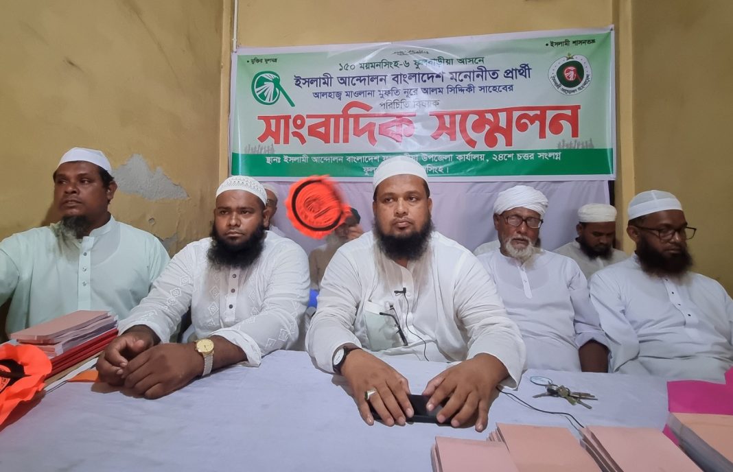 আসন্ন জাতীয় সংসদ নির্বাচনে ১৫০ ময়মনসিংহ-৬ আসনের ইসলামী আন্দোলন বাংলাদেশের মনোনীত প্রার্থী আলহাজ্ব মাওলানা মুফতি নূরে আলম সিদ্দিকী এর পরিচিতি বিষয়ক সাংবাদিক সম্মেলন অনুষ্ঠিত হয়েছে। রবিবার (৫ অক্টোবর) পোষ্ট অফিস রোড অস্থায়ী দলীয় কার্যালয়ে অনুষ্ঠিত হয়।