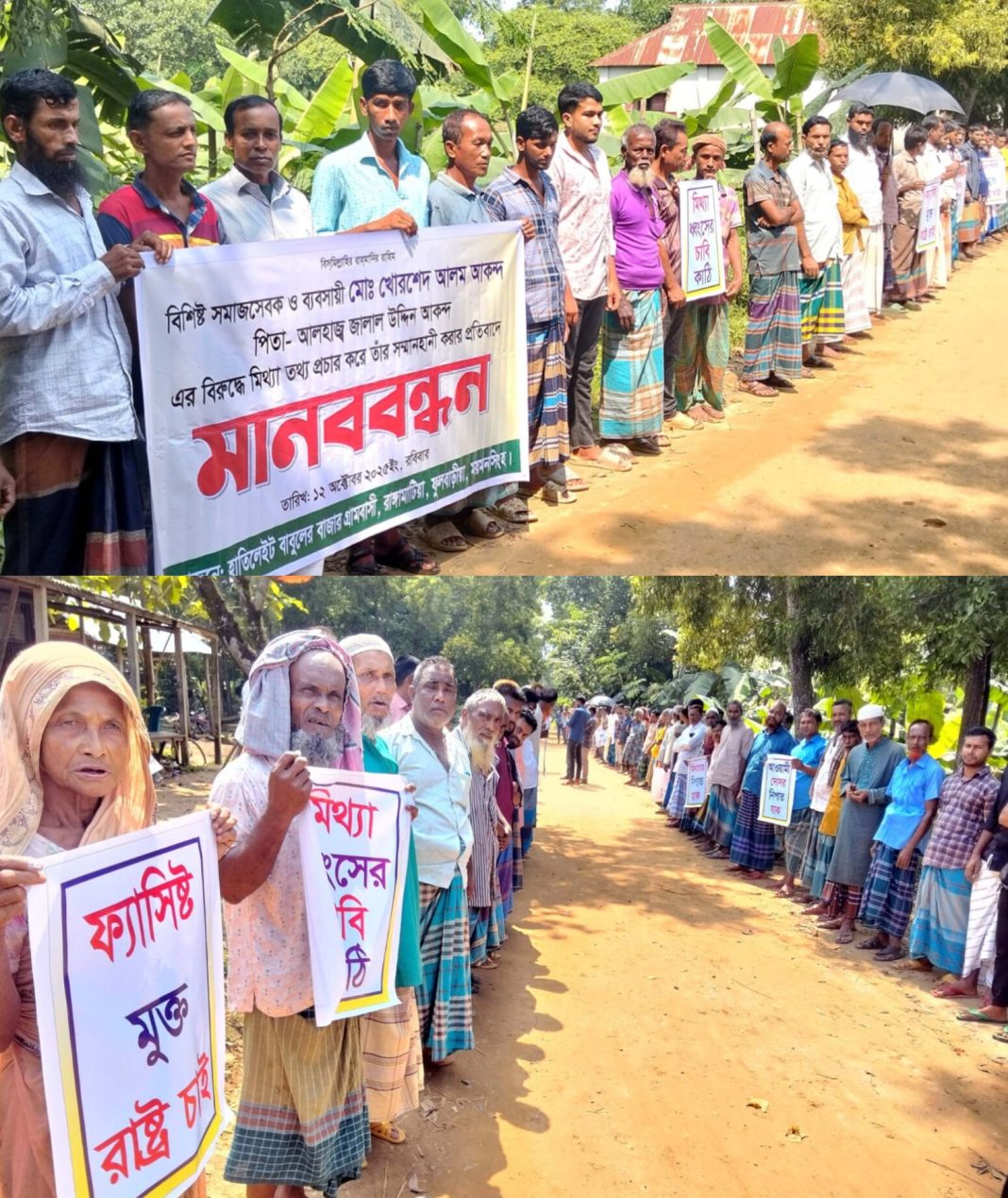 ফুলবাড়িয়া উপজেলার রাঙ্গামাটিয়া ইউনিয়নের বাবুলের বাজারের বিশিষ্ট সমাজসেবক ও ব্যবসায়ী মো: খোরশেদ আলম আকন্দের বিরুদ্ধে মিথ্যা তথ্য প্রচার করে তাঁর সম্মানহানী করার প্রতিবাদে মানববন্ধন অনুষ্ঠিত হয়েছে।