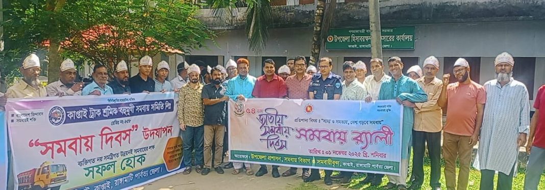 রাঙামাটির কাপ্তাইয়ে বিভিন্ন আয়োজনে ৫৪ তম জাতীয় সমবায় দিবস পালন করা হয়েছে। শনিবার (১ নভেম্বর) সকাল সাড়ে ১০ টায় কাপ্তাই উপজেলা প্রশাসন, উপজেলা সমবায় বিভাগ এবং সমবায়বৃন্দের আয়োজনে কাপ্তাই উপজেলা পরিষদ চত্বর হতে একটি র্যালি ও পরে উপজেলা মিলনায়তনে আলোচনা সভা অনুষ্ঠিত হয়।