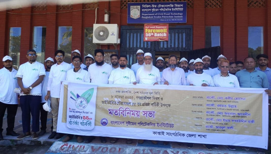 বৃহস্পতিবার (১৩নভেম্বর)সকাল ১১টায় বাংলাদেশ সুইডেন পলিটেকনিক ইনস্টিটিউট এ আইডিইবি’র সাংগঠনিক জেলা কাপ্তাইয়ের আয়োজনে বর্ণাঢ্য র্্যালী ও আলোচনা সভা অনুষ্ঠিত হয়।