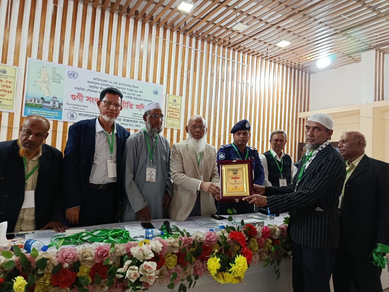 সংবর্ধিতদের মধ্যে সমাজসেবায় মোহাম্মদ বেলায়েত আলী চৌধুরী-মরণোত্তর (পোমরা) এর পক্ষে তাঁর পৌত্র মোহাম্মদ নাজিম আলী চৌধুরী, শিক্ষা বিস্তারে হামিদ শরীফ মিয়া চৌধুরী-মরণোত্তর (শিলক) এর পক্ষে তাঁর পৌত্র মোকাররম হোসেন চৌধুরী, ন্যায়বিচারে বিচারপতি রেজাউল করিম রেজা (স্বনির্ভর রাঙ্গুনিয়া) ও চিকিৎসায় প্রফেসর ডা. ওয়াকিল আহমদ (রাজানগর)-কে “মানবাধিকার পুরস্কার” সম্মাননা প্রদান করা হয়।