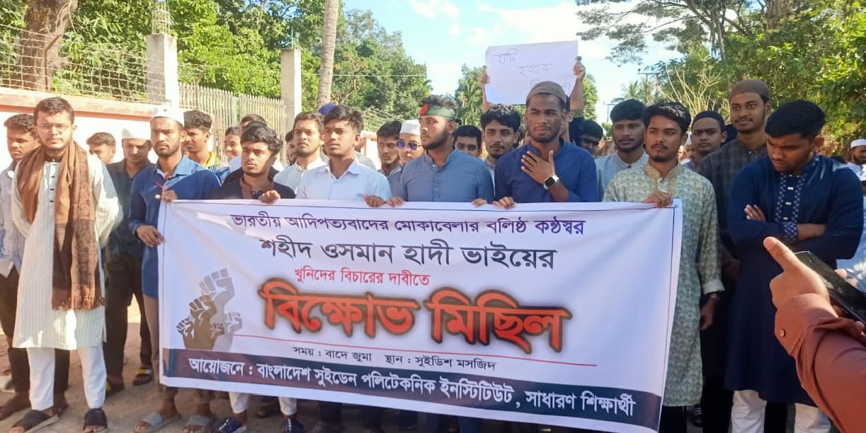 ইনকিলাবের মুখপাত্র শহীদ ওসমান হাদীর খুনিদের বিচারের দাবিতে কাপ্তাইয়ে বিক্ষোভ মিছিল করা হয়েছে। শুক্রবার বাদ জুমা কাপ্তাই বিএফআইডিসি শিল্প এলাকা বটতল হতে বাংলাদেশ সুইডেন পলিটেকনিক ইনস্টিটিউট এর সাধারণ শিক্ষার্থীরা কাপ্তাই নতুন বাজার ও কার্গো মসজিদ পযন্ত একটি বিক্ষোভ মিছিল করে। মিছিলটি নতুন বাজার সিএনজি স্টেশনে এসে শেষ হয়। পরে এক পথসভা অনুষ্ঠিত হয়।
