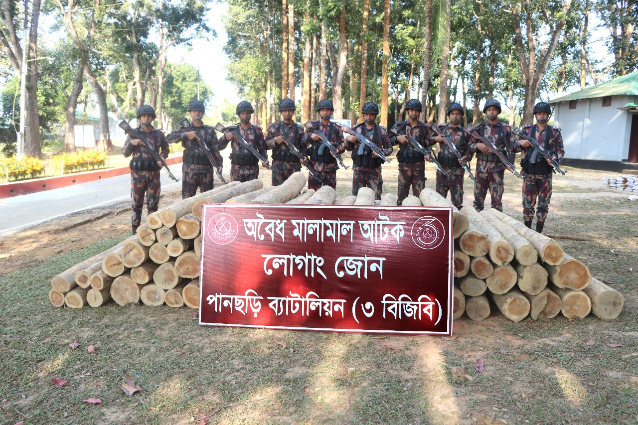 খাগড়াছড়ি জেলার পানছড়িতে অবৈধ কাঠ আটক করেছে পানছড়ি ব্যটালিয়ান (৩বিজিবি)। লোগাং জোন।