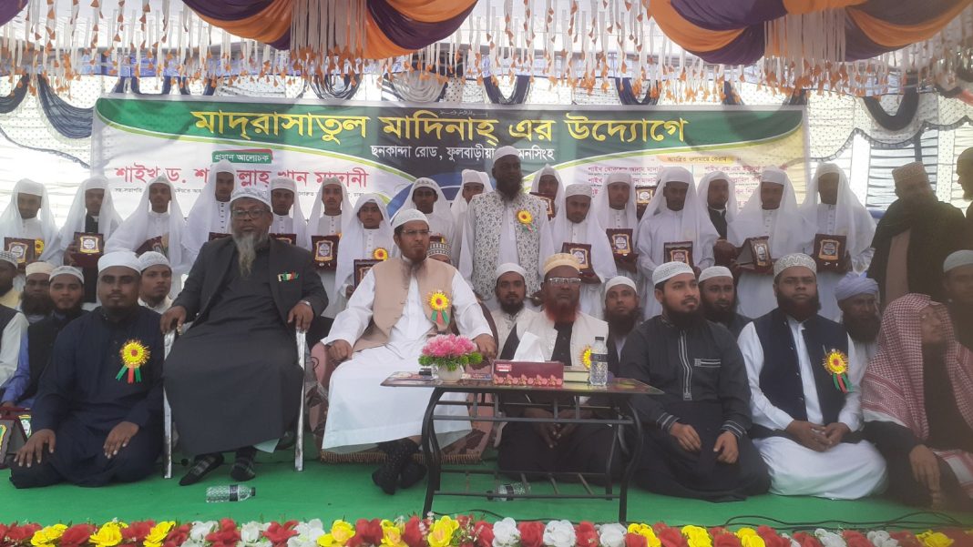 ফুলবাড়িয়ার ছনকান্দা রোডস্থ ‘মাদ্রাসাতুল মাদিনাহ’ ইসলামিক সেমিনার ও হাফেজ ছাত্রদের পাগড়ি প্রদান করা হয়েছে। রবিবার দুপুরে (২১ ডিসেম্বর) এতে প্রধান আলোচক ছিলেন, বাংলাদেশ জমঈয়তে আহলে হাদিসের সহ সভাপতি ও জামিয়া মানারুত তাওহীদ, উত্তরা ঢাকার প্রতিষ্ঠাতা পরিচালক শাইখ ড. শহীদুল্লাহ খান মাদানী।