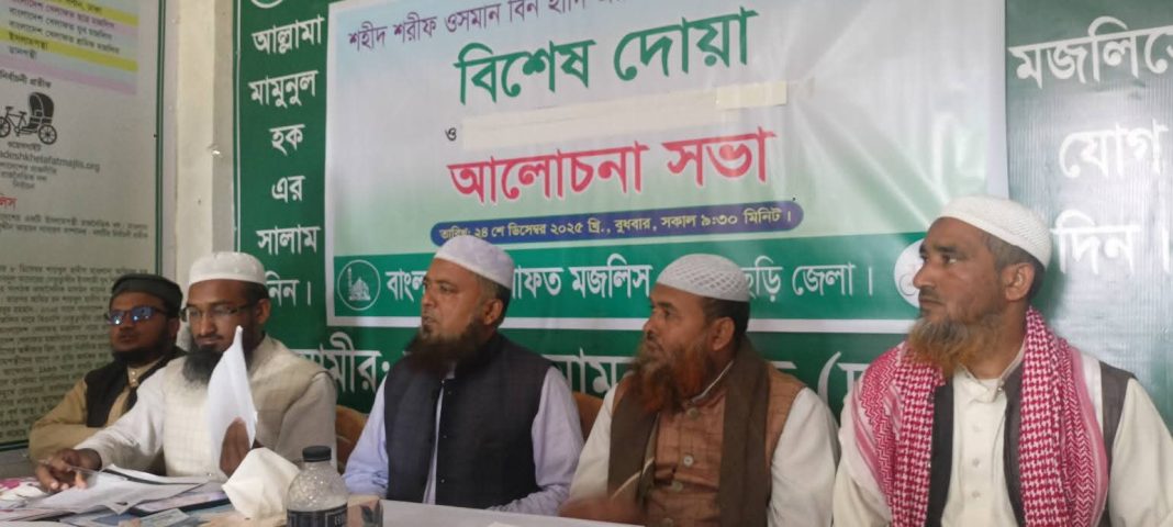 জুলাই যোদ্ধা ও ইনকিলাব মঞ্চের মুখপাত্র শরীফ ওসমান হাদির বিদেহী আত্মার মাগফিরাত কামনায় বিশেষ দোয়া ও আলোচন সভা অনুষ্ঠিত হয়েছে ।