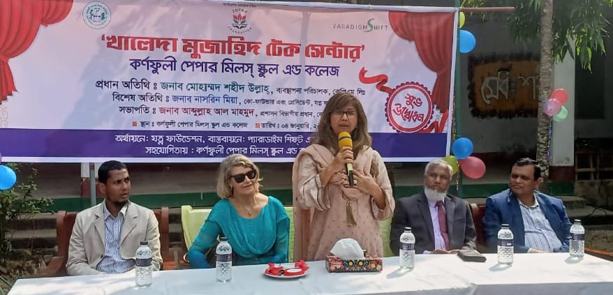 রাঙামাটির কাপ্তাই চন্দ্রঘোনা কর্ণফুলী পেপার মিলস স্কুলে খালেদা মুজাহিদ টেক সেন্টার উদ্বোধন করা হয়েছে। বেসরকারি সংস্থা যত্ন ফাউন্ডেশন এর অর্থায়নে, প্যারাডাইস শিফট এডুকেশন ইন্ক এর বাস্তবায়নে ও কর্ণফুলী পেপার মিলস স্কুল এর সহযোগিতায় রবিবার ( ৪ জানুয়ারি) খালেদা মুজাহিদ টেক সেন্টার নামে নবনির্মিত কম্পিউটার ল্যাবরেটরীর উদ্বোধন কার্যক্রমের শুরু করা হয়। কেপিএম লিমিটেডের মহা ব্যবস্থাপক ( প্রশাসন) আব্দুল্লাহ আল মাহমুদের সভাপতিত্বে এবং কেপিএম স্কুল এর শিক্ষক আব্দুল্লাহ আল মাবুদ এর সঞ্চালনায় এতে প্রধান অতিথি উপস্থিত ছিলেন কেপিএম লিমিটেডের এমডি মোহাম্মদ শহীদুল্লাহ। বিশেষ অতিথি ছিলেন যত্ন ফাউন্ডেশনের কো ফাউন্ডার এন্ড প্রেসিডেন্ট নাসরিন মিয়া।