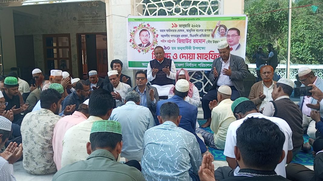 রাঙামাটির কাপ্তাই উপজেলা বিএনপি’র নির্বাচন পরিচালনা কমিটির আয়োজনে মহান স্বাধীনতার ঘোষক, আধুনিক বাংলার রূপকার, বহু দলীয় গণতন্ত্রের প্রবক্তা, বিএনপি’র প্রতিষ্ঠাতা শহীদ রাষ্ট্রপতি জিয়াউর রহমান (বীর উত্তম) এর ৯০ তম জন্মবার্ষিকী উপলক্ষে মিলাদ ও দোয়া মাহফিল অনুষ্ঠিত হয়েছে। মঙ্গলবার বাদ যোহর উপজেলা সদর বড়ইছড়ি মডেল জামে মসজিদ প্রাঙ্গনে আয়োজিত মিলাদ ও দোয়া মাহফিল অনুষ্ঠিত হয়। উক্ত দোয়া মাহফিলে উপস্থিত ছিলেন রাঙ্গামাটি জেলা বিএনপির সহ-সভাপতি ডা: রহমত উল্লাহ,জেলা বিএনপি’র যুগ্ম সাধারণ সম্পাদক ও নির্বাচন পরিচালনা কমিটির আহবায়ক লোকমান আহমেদ, জেলা বিএনপির যুগ্ম সাধারণ সম্পাদক ও নির্বাচন পরিচালনা কমিটির সদস্য সচিব দিলদার হোসেন, উপজেলা বিএনপি’র সিনিয়র সহ-সভাপতি জাফর আহমেদ স্বপন, সাধারণ সম্পাদক ইয়াসিন মামুন,বিএনপি নেতা আনিসুর রহমান, আব্দুল হাশেম মেম্বার,জাকির হোসেন,উপজেলা বিএনপির সহ সাংগঠনিক সম্পাদক ও যুবদলের সিঃ যুগ্ন আহবায়ক মোঃ আবু হাসান চৌধুরী রক্সি, মোঃ মাসুদ, কাপ্তাই উপজেলা যুবদলের সদস্য সচিব ইব্রাহিম হাবিব মিলু, তাঁতীদলের সাংগঠনিক সম্পাদক মোঃ রহমত উল্লাহ মনু, উপজেলা শ্রমিক দলের সাধারণ সম্পাদক আল নাহিয়ান খান ডালিম, মোশাররফ হোসেন অপু, উপজেলা ছাত্রদলের সদস্য সচিব মোহাম্মদ ইব্রাহিম সহ জেলা উপজেলা বিএনপির নেতৃবৃন্দ। মিলাদ ও দোয়া মাহফিল পরিচালনা করেন উপজেলা মডেল মসজিদের ইমাম মোহাম্মদ সোলায়মান।