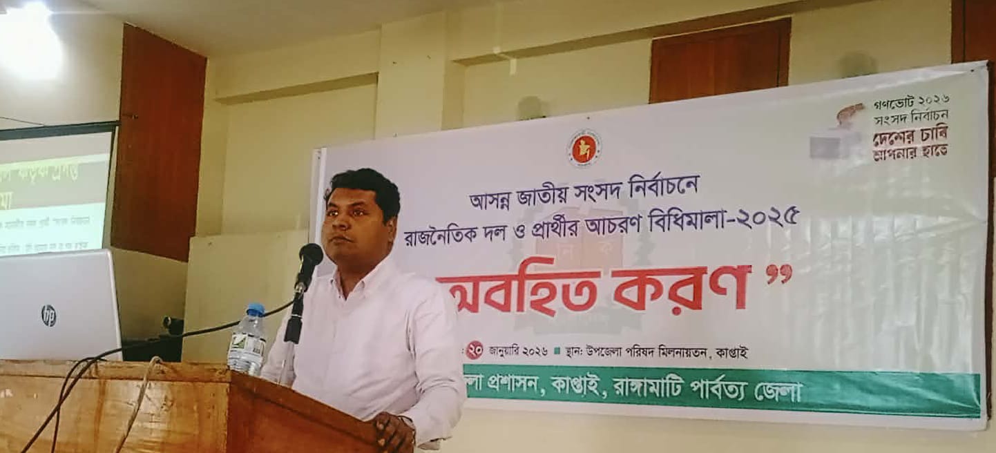 বাংলাদেশ নির্বাচন কমিশন কর্তৃক প্রণীত “সংসদ নির্বাচনে রাজনৈতিক দল ও প্রার্থীর আচরণ বিধিমালা-২০২৫” বিষয়ে অবহিতকরণ সভা হয়েছে। মঙ্গলবার সকাল১১টায় কাপ্তাই উপজেলা পরিষদ মিলনায়তনে অবহিত করণ সভা অনুষ্ঠিত হয়।