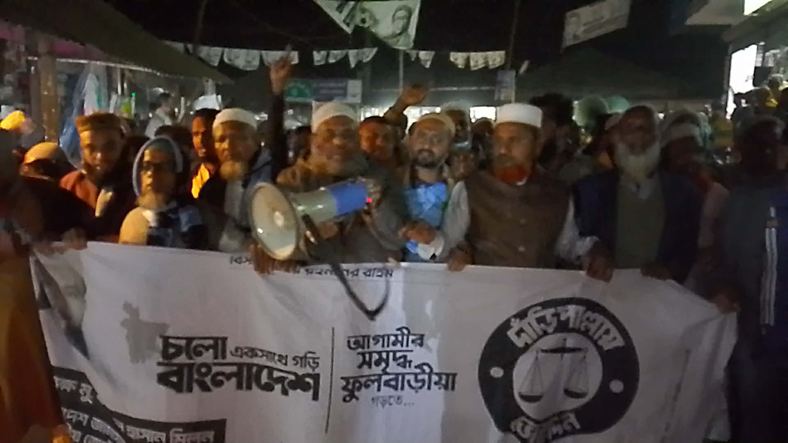 ফুলবাড়িয়া উপজেলার রাধাকানাই ইউনিয়নের ধুরধুরীয়া বাজারে বাংলাদেশ জামায়াত ইসলামী মনোনীত প্রার্থী অধ্যক্ষ মোহাঃ কামরুল হাসান মিলন (দাঁড়িপাল্লা প্রতিক) কে বিজয়ী করতে এক বিশাল মিছিল অনুষ্ঠিত হয়েছে। শনিবার (৭ ফেব্রুয়ারি) সন্ধ্যায় পর ধুরধুরিয়া বাজারের বিভিন্ন সড়ক প্রদক্ষিণ করে মিছিলটি ধুরধুরীরা মাদরাসায় গিয়ে শেষ হয়। মিছিলে দলীয় নেতাকর্মীদের পাশাপাশি স্থানীয় সাধারণ মানুষের স্বতঃস্ফূর্ত অংশগ্রহণ করে।