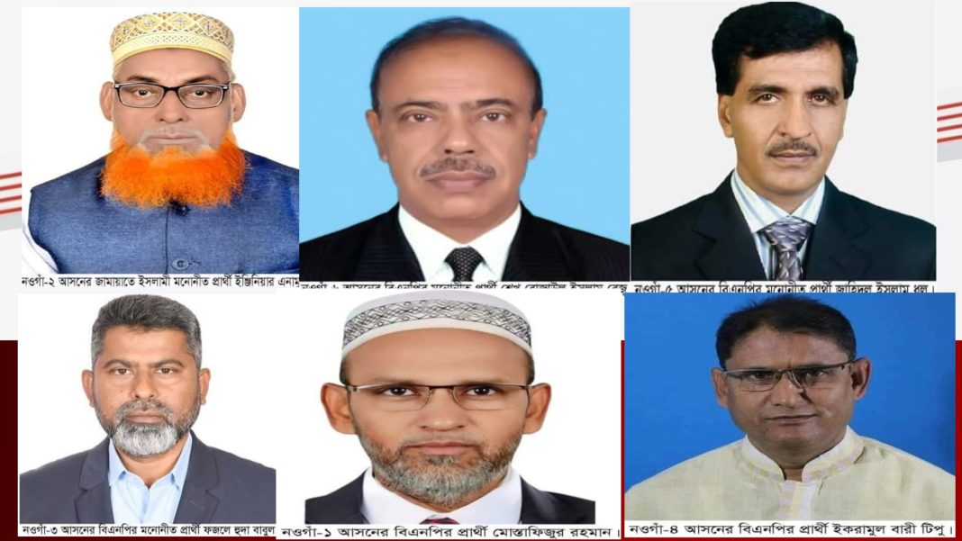 ত্রয়োদশ জাতীয় সংসদ নির্বাচন গত ১২ ০২ -২০২৬- ইং তারিখের বাংলাদেশ জাতীয় সংসদ নির্বাচনে বেসরকারি ভাবে নওগাঁ জেলার ৬টি সংসদীয় আসনের মধ্যে ৫টি আসনে বিএনপি মনোনীত প্রার্থীরা বিজয়ী লাভ করেছেন। মাএ ১টি আসনে বিজয়ী লাভ করেছেন জামায়াতে ইসলামীর মনোনীত প্রার্থী। হত রাতে জেলা প্রশাসক মোহাম্মদ সাইফুল ইসলাম বিজয়ী প্রার্থীদের নাম বেসরকারি ভাবে ঘোষণা করেন।